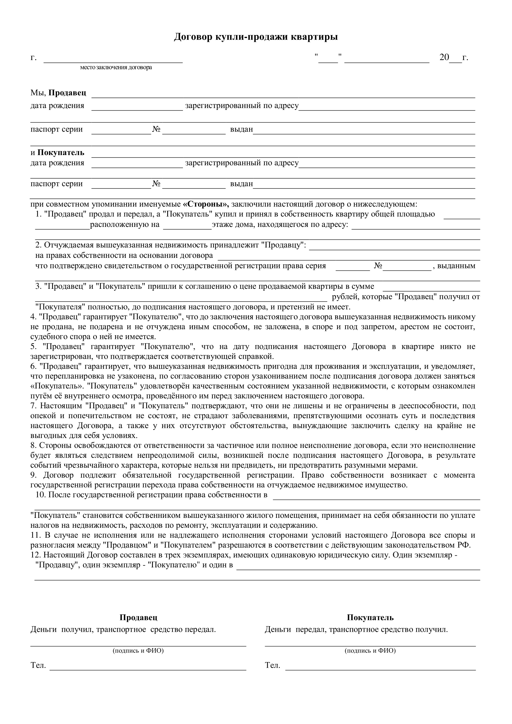 - Составить и подписать договор купли-продажи (далее – ДКП).