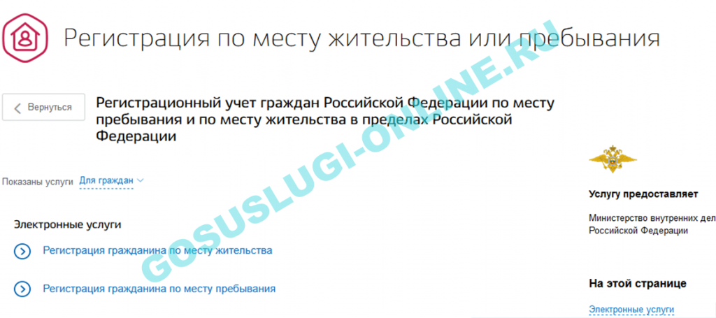 Прописка в квартиру через портал Госуслуги осуществляется по следующим направлениям: